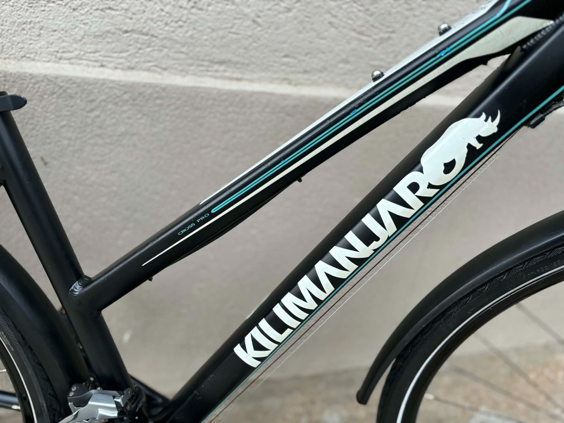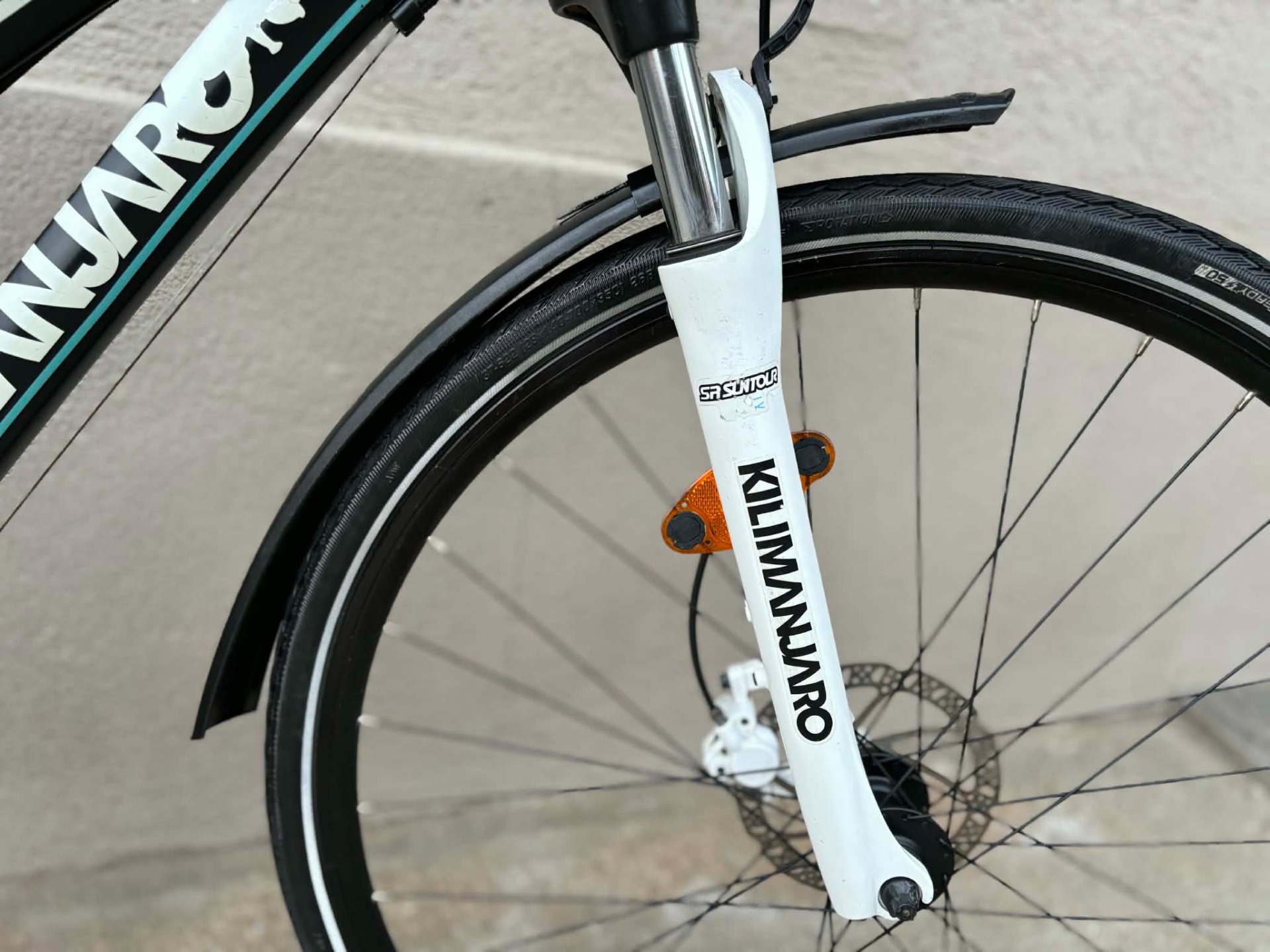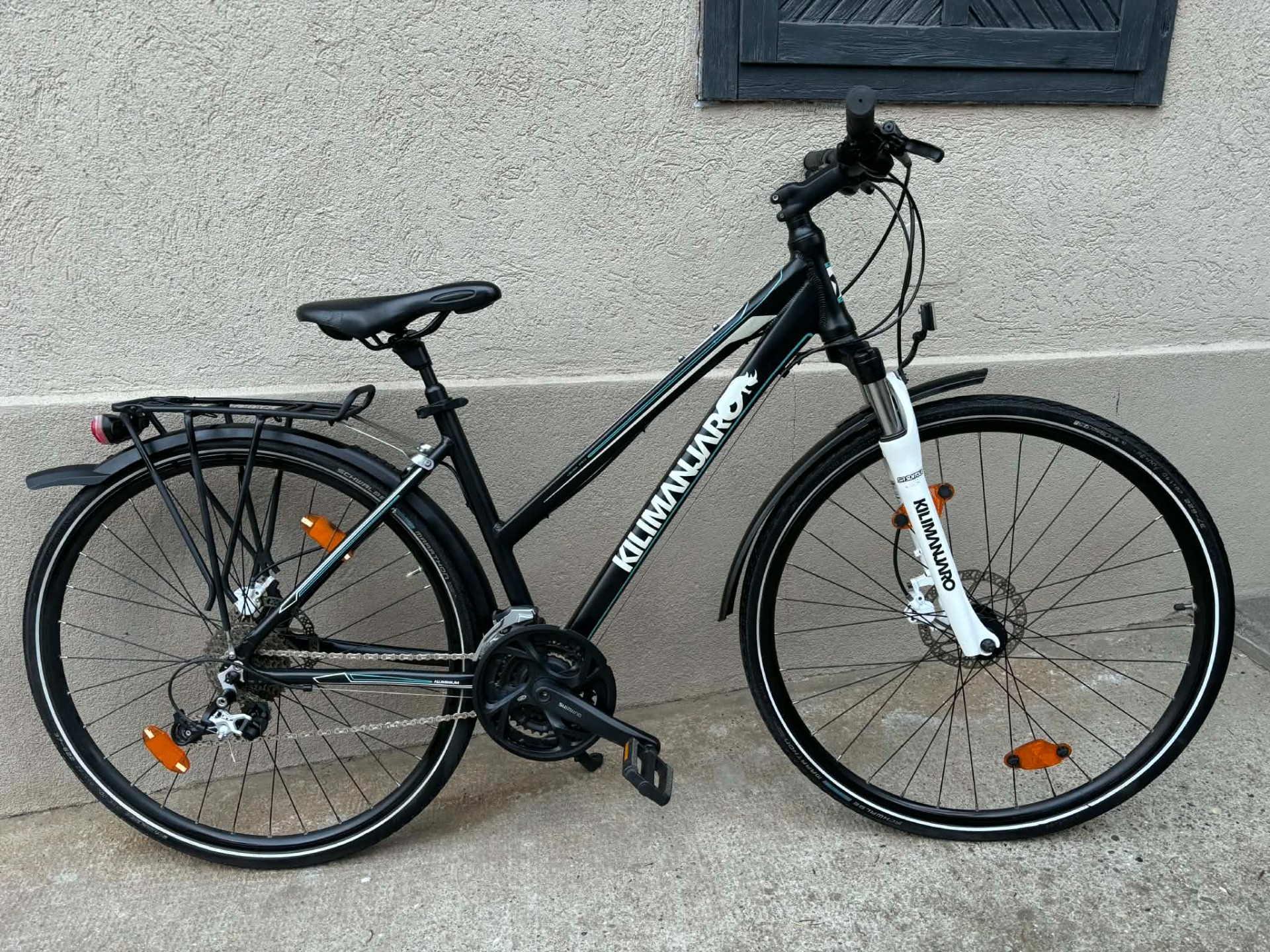 Szép állapotú, 28-as, aluvázas, Kilimanjaro Cross Pro trekking kerékpár. 27 sebességes, Shimano Deore, és Altus váltókkal. Tektro Auriga, hidraulikus tárcsafékekkel. SR Suntour Nex, lockolható teleszkópos villával. Duplafalú felnikkel. Quando kerékagyakkal. Shimano hajtókarokkal.