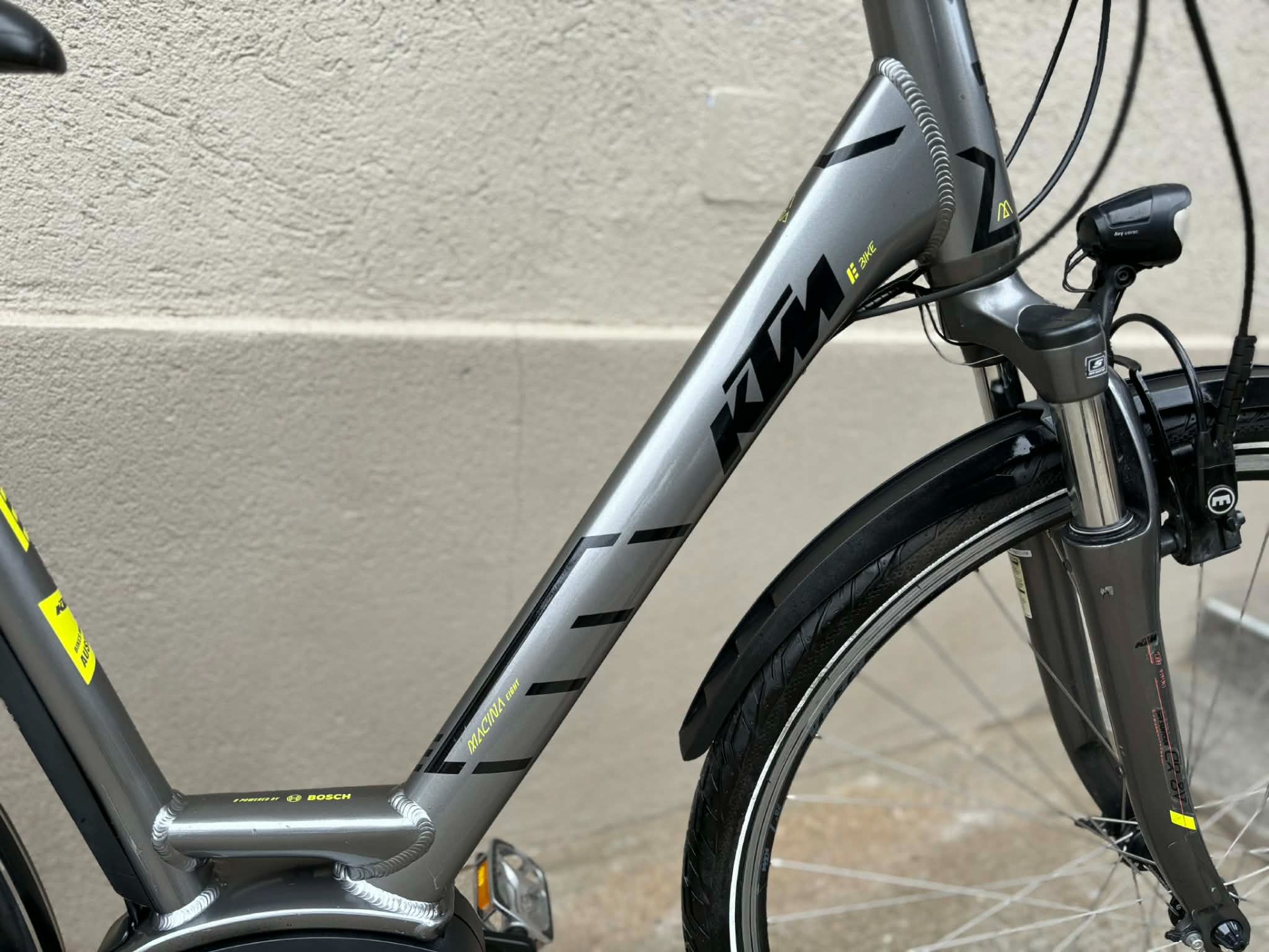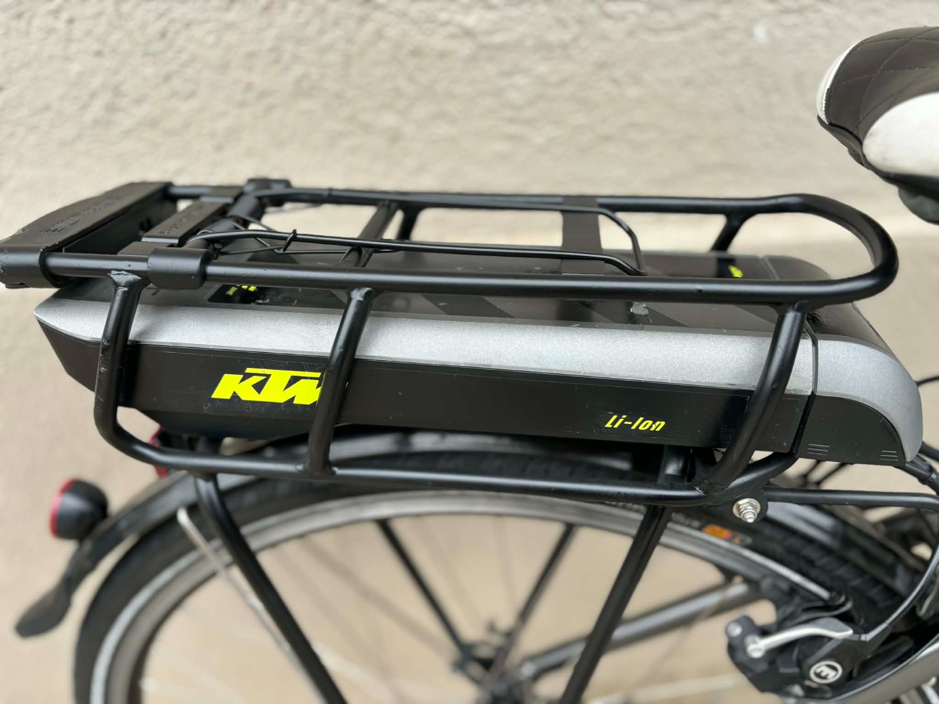 Nagyon szép állapotú, 28-as, aluvázas, KTM Macina Eight E-Bike kerékpár. 8 sebességes, Nexus agyváltóval. SR Suntour CR-8V teleszkópos villával. Magura hidraulikus fékekkel. Kera, duplafalú, szegecselt felnikkel.