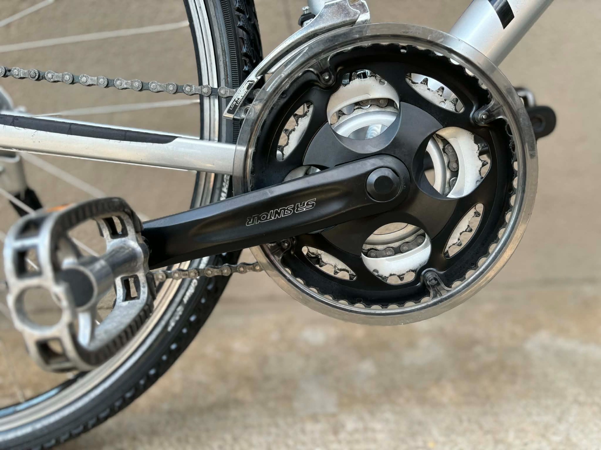 teleszkópos villával. SR Suntour hajtókarokkal. Duplafalú felnikkel. Állítható dőlésszögű stucnival.