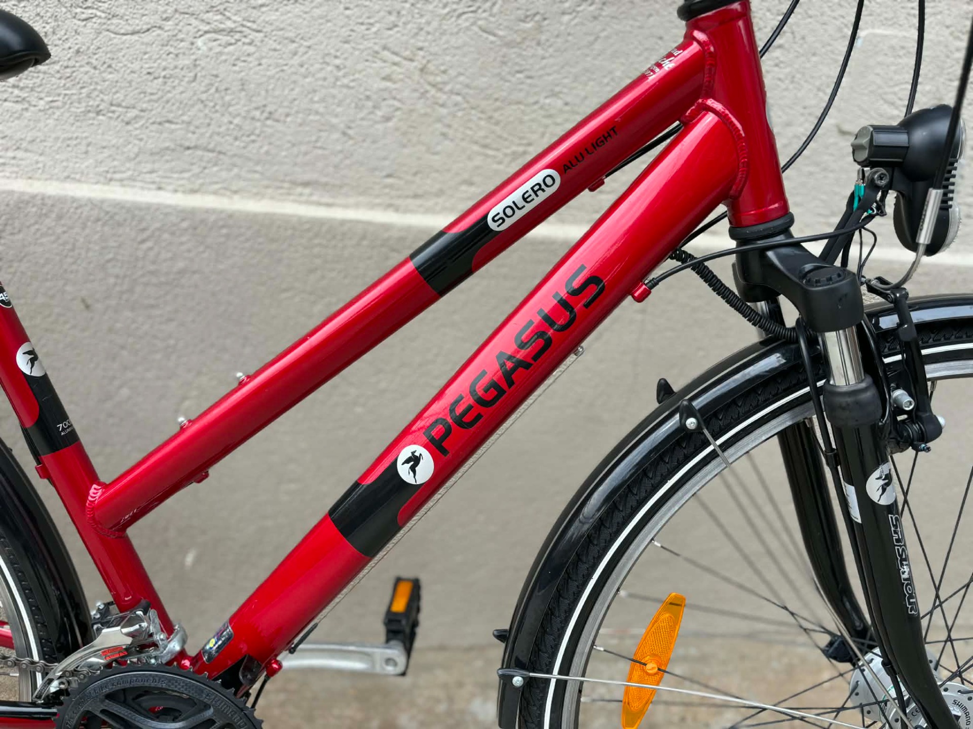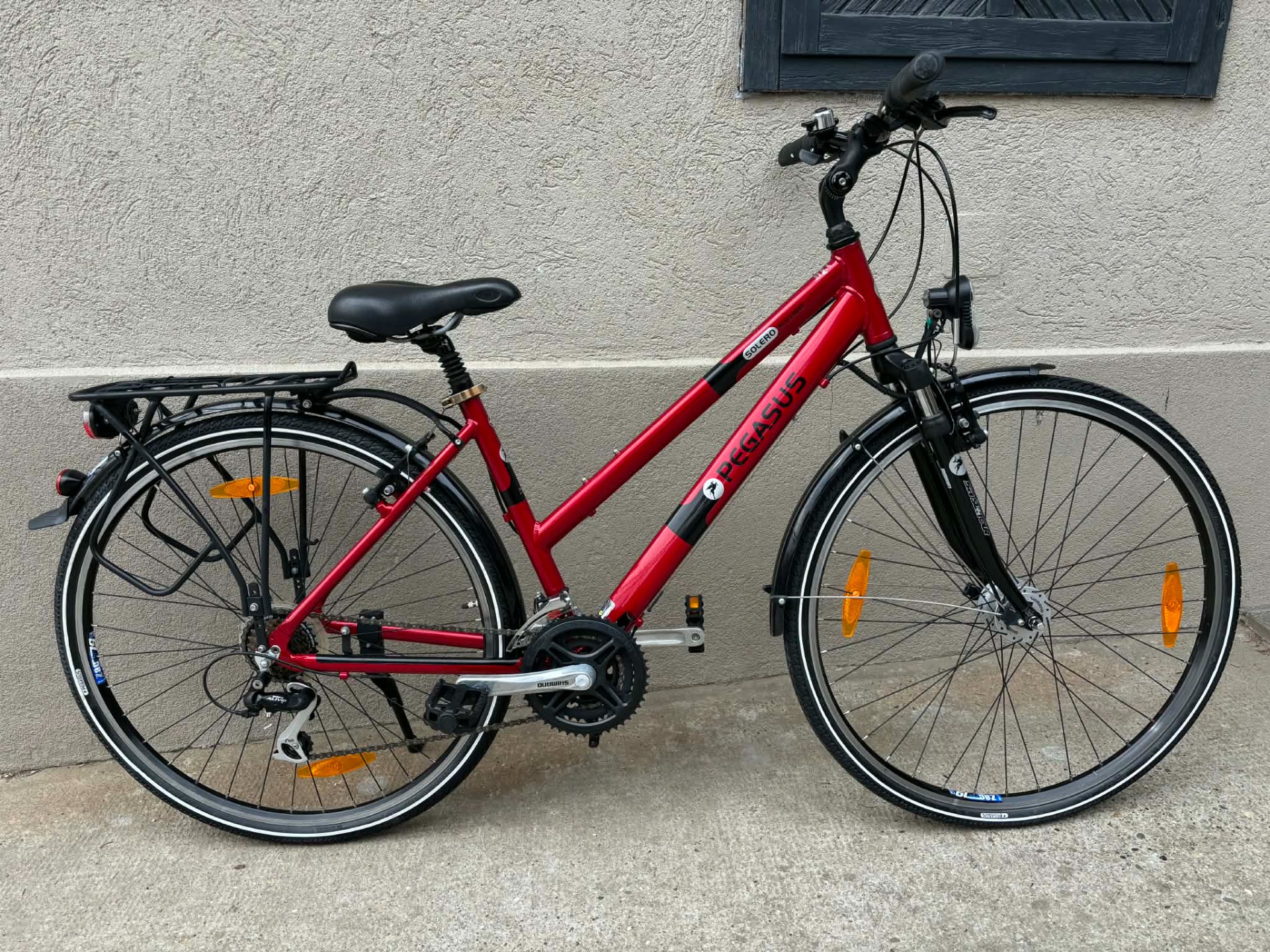 Nagyon szép állapotú, 28-as, aluvázas, Pegasus Solero trekking kerékpár. 21 sebességes, Shimano Alivio váltóval. SR Suntour teleszkópos villával, Shimano hajtókarokkal, duplafalú felnikkel.